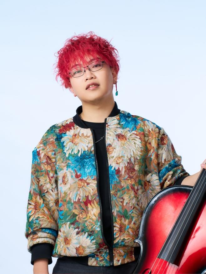 ヌビア。真っ赤な髪とチェロがトレードマークの元気っ子!みんなの頼れる弟分。